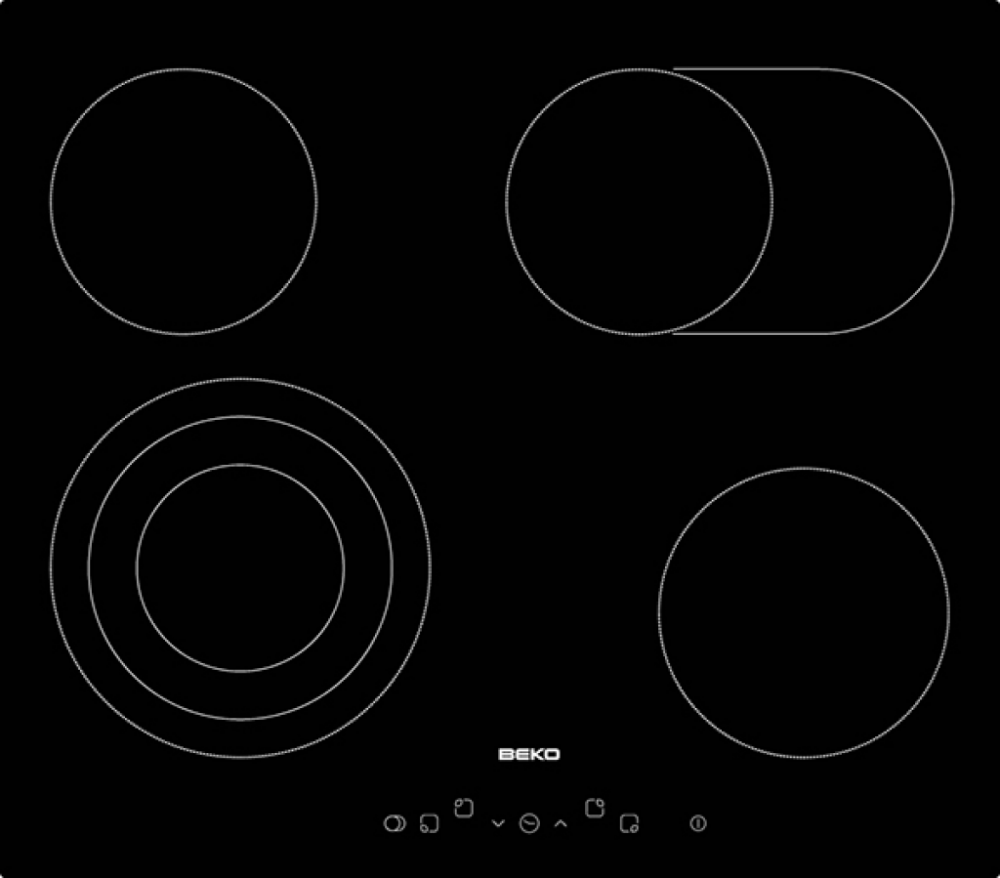 : BekoPočet elektrických varných zón 4 zone(s), Príkon 7000 W, Farba Čierna, Výška 45 mm, Šírka 560 mm, Hĺbka 490 mm
