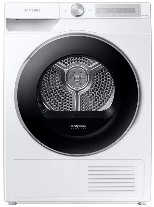 Smart sušička bielizne Samsung DV90T6240LH/S7 v bielom prevedení a kapacitou sušenia 9 kg je zaradená do energetickej triedy A+++. Ponúka až 13 programov pre rôzne typy bielizne, vrátane rýchleho programu Super Speed a hygienického programu. Výkonné sušenie pomocou tepelného čerpadla. Možnosť ovládania prostredníctvom Wi-Fi a aplikácie SmartThings a AI Control. Bubon s vnútorným osvetlením. Má aj ochranu voči pokrčeniu, Air Wash a detský zámok. Vybavená digitálnym invertorovým motorom s hlučnosť 63 dB a a filtrom 2 v 1 pre jednoduchú údržbu. Možno otvárania dvierok do oboch strán.